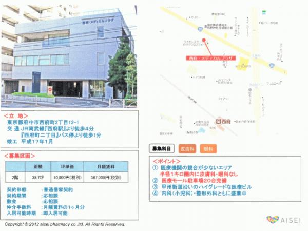 ・既に整形外科(1F)及び、内科・小児科(2F)が共に盛業中であり、認知度と云う点に於いても既に広く知られておりますので、残り1コマとしてのテナントであるという面において、ご開業後の集患面においても大変有利な案件です。